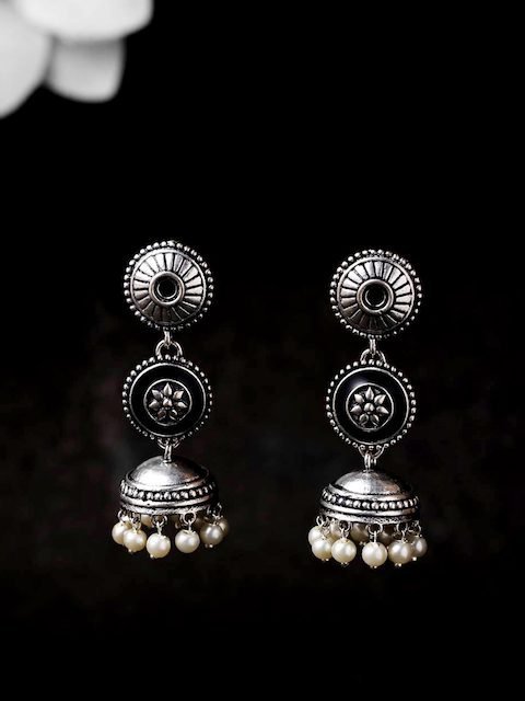 Silver-toned dome shaped jhumkas