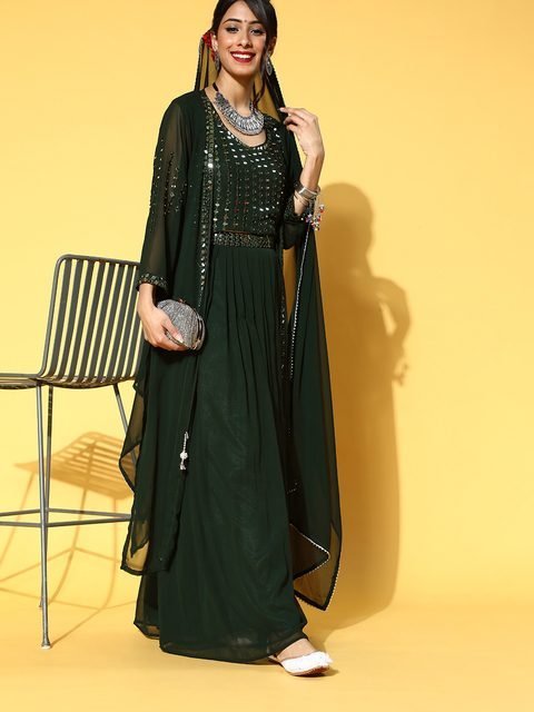 Spice things up with glittering chandbalis, a pair of sparkly mojaris, and an elegant bracelet