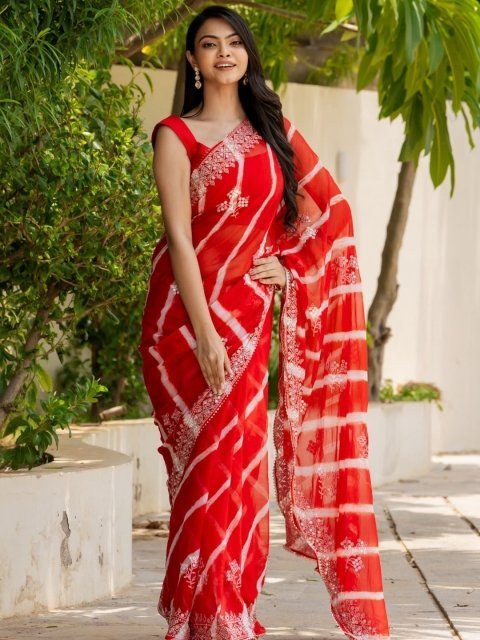 The saree comes with an unstitched blouse piece
