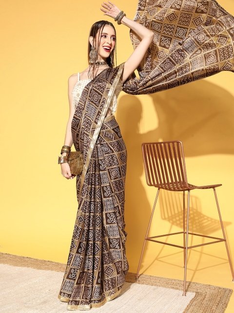 Rang Gali Brown Ready to Wear Bandhani Silk Saree