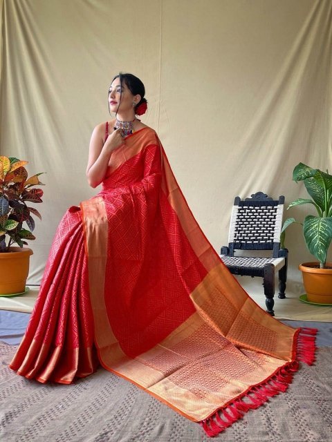 The saree comes with an unstitched blouse piece