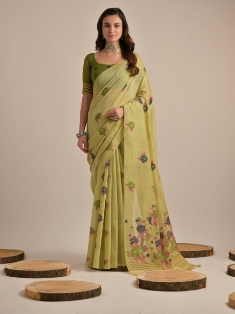 The saree comes with an unstitched blouse piece