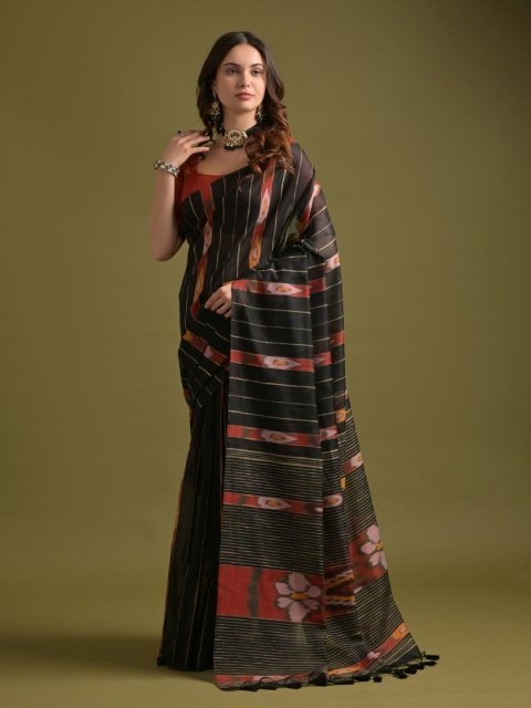 VISHNU WEAVES Woven Design Zari Pure Cotton Ikat Saree