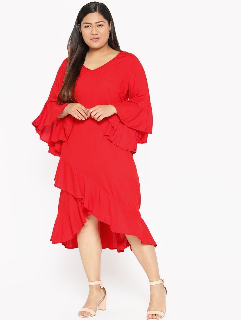 print & pattern : solids, length : Midi, type : Plus,A-Line,